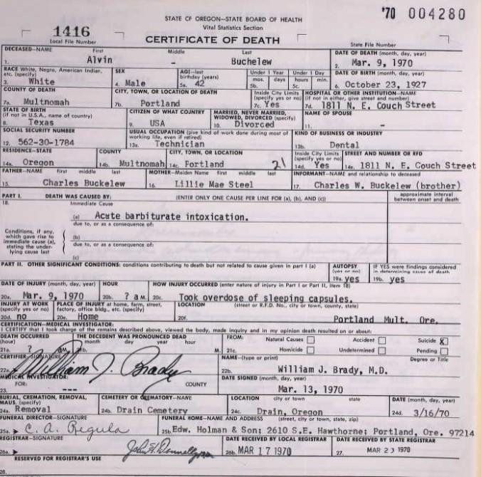 09 March 1970 Drain, Oregon, United States of America (suicide by barbiturates, age 42) |