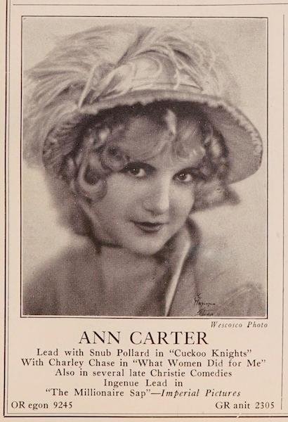 https://archive.org/details/stand-cast-dir-feb-1927/page/n1326/mode/1up?q=%22ann+carter%22 (The Standard Casting Directory, Jun 1927)