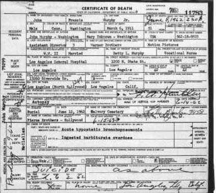 08 June 1962 Los Angeles, California, United States of America (suicide by barbiturates, age 51) |