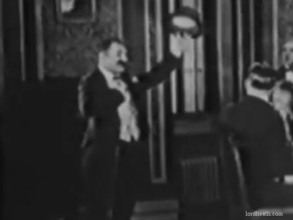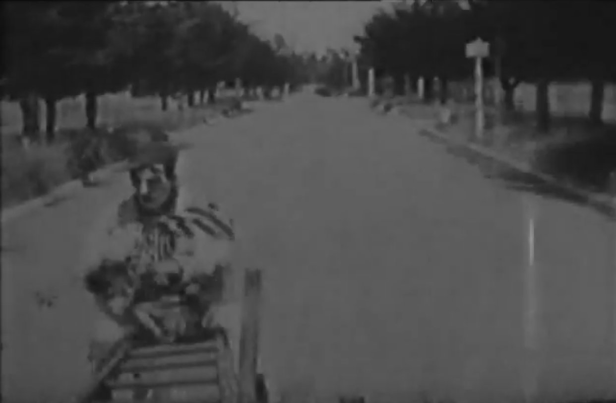 [from 4mins 13secs of footage available for review:] A car pulls up and picks up Sammy Brooks in the front, whilst Gaylord Lloyd hops on the back of the trailer and hangs on for dear life as the car speeds off. |