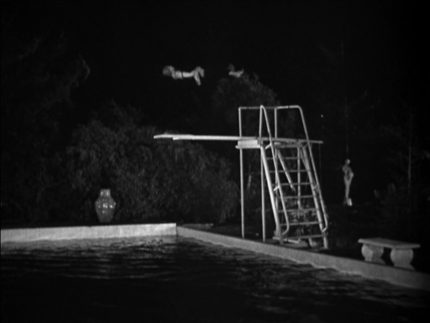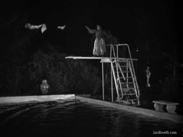 | Favourite bit When Patsy climbs up to the diving board over the swimming pool to get to a levitating Thelma. It was a good visual, especially the stunt "she" does when the dog startles her. |