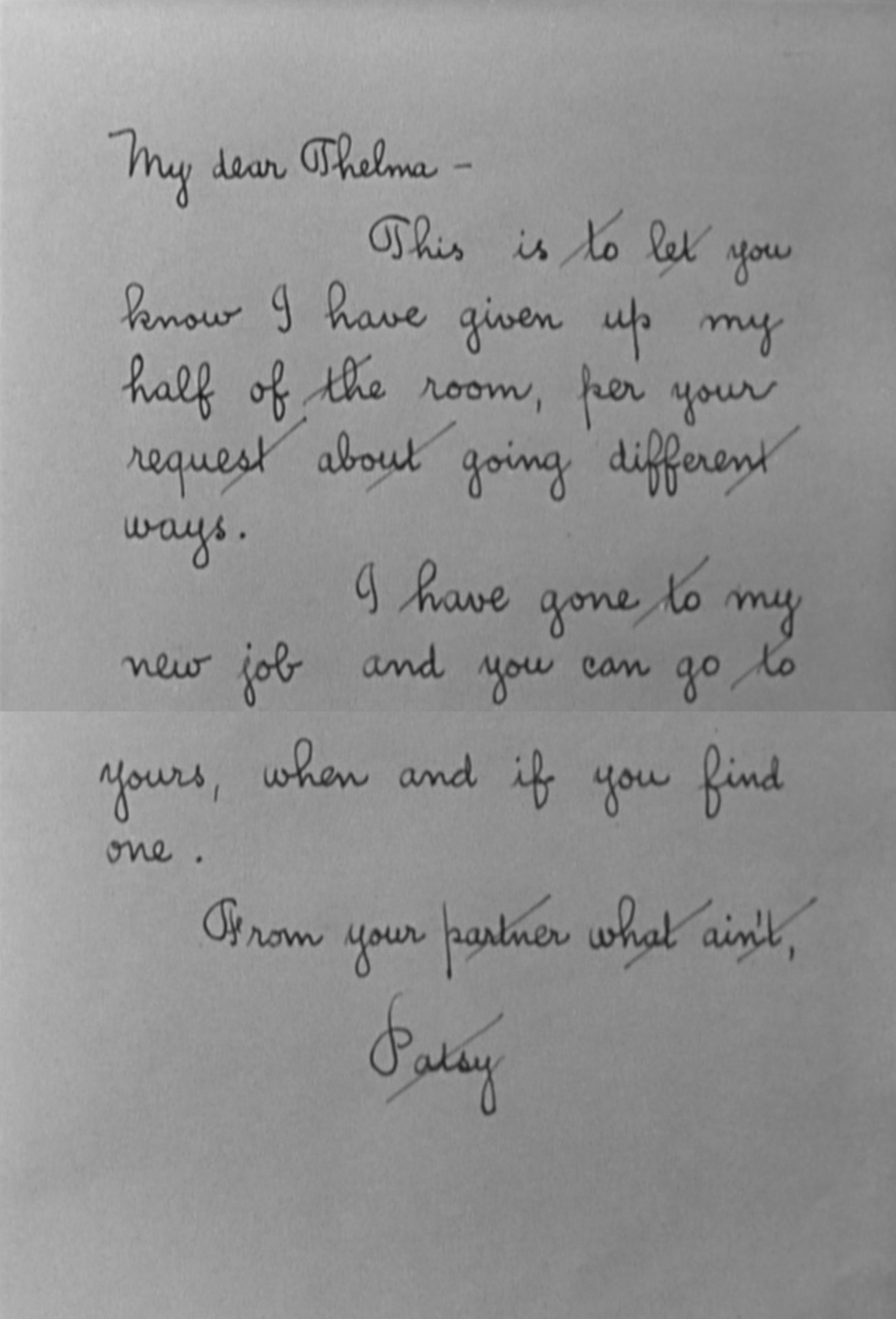 Thelma and Patsy are performers at Pinsky's Burlesque and are reprimanded by the show's owner for a poor performance as soon as they come off the stage. Patsy demonstrates her tap-dance routine in front of Mr. Pinsky, with Thelma briefly joining in. When Pinsky leaves the room, the girls try to fake their routine by banging their shoes on a table knowing their boss is listening from outside. When Pinsky re-enters the room the gig is up and the girls are told to leave. Thelma tells Patsy they should go their separate ways, so Patsy jumps into a limousine/taxi when she pretends to recognise the posh-looking passenger. Thelma arrives back at her hotel to find a note from Patsy. Mr. Sarazac, a guest at the hotel tells the clerk he is looking for an assistant to work with him at a function later that evening. Thelma overhears and offers her services. Later, Thelma turns up wearing her best evening dress and gets into the limousine to take her to the venue and finds a veil-wearing Patsy already in the back seat. The two girls have a conversation and it turns out they are both heading for the same destination. Thelma arrives and is greeted by the hostess. She tells her she is here as the stooge to help the magician with his act. Thelma is then introduced to the Duke, whom she is there to entertain. Patsy has also arrived and is busying herself in a room where she (or rather BETTY DANKO, but we're not meant to know that) falls into a trunk after watering a prop flower and has to be rescued by the magician. |