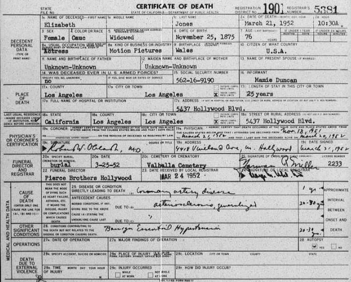 21 March 1952 Hollywood, Los Angeles, California, United States of America (coronary artery disease, age 81) |