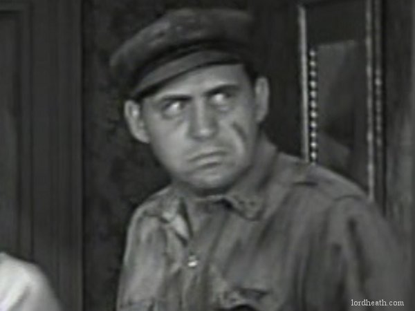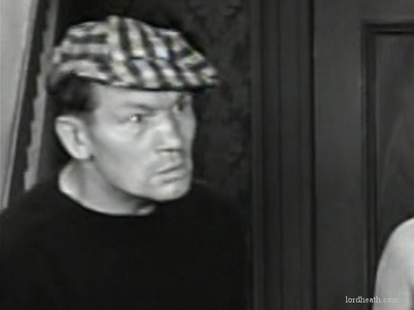 Joe's wife sees her husband hide himself in a large crate on the dock but the baggage handlers load another crate on top of it. She then offers cabbies Billy and Hercules a fare if they can deliver the crate (with her husband in) to her house. They accept the task whilst she takes her own cab home with Ben. Billy and Hercules spend an eternity tring to use a crane to hoist up the relevant crate on the dock before it falls down on Billy's head and spills its load of girdles. Trapped under the fallen crates, Billy sneezes and sends Hercules flying down off the top of the crates and into the sea below.   The two cabbies finally arrive at the house of the French woman, who is held up with her gangster molls and a creepy-looking butler. Ben is running around the house trying to escape/hide from something but is pulled into a trap door by an unseen assailant. Billy and Hercules bring the trunk containing Joe into the house. Joe cuts a hole in the side of the trunk with a knife and prods Hercules in the rear with it. He then holds Billy's hand as Billy pulls the trunk along the floor. Billy realises the hand coming from the trunk and runs away scared as Hercules runs upstairs into a bedroom where Ben has disguised himself as a chair. Naturally, Billy sits down on it and when it starts moving, Billy runs and jumps out of the window - head first into a barrel where Hercules had just landed himself. It's all a bit too much when Ben Blue joins them in the barrel as well! The three men head for the front door only to find it locked. One loud sneeze later and Billy Gilbert blows it down and they all run out into the night. |
