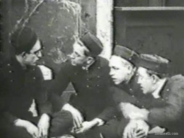 People are at the train station saying goodbyes to their loved ones. A man barges past with a large instrument, whilst detective Snub bums a light from a crying man. Snub misses the train and has to run after it. A couple check into a hotel and the desk clerk (WILLIAM GILLESPIE) rings for the four bellhops who are busy playing cards. One of them is HAROLD LLOYD who seemingly loses a hand and pulls out a massive wad of notes from his jacket to pay the game. A group of people, presumably hotel guests, get into an elevator. Harold begins flirting with BEBE DANIELS but another woman thinks he is smiling at her and responds in kind. A guest (I think this is JAMES PARROTT) starts piling lots of baggage into Harold's arms before Harold attempts to get into the lift with the other guests but he drops them and walks away. A young girl (JUNE HOVICK) wanders into the lobby and hides inside one of the boxes. Harold struggles to hold some very large baggage before doing a brief dance around a large box and running into the arms of a nurse. |