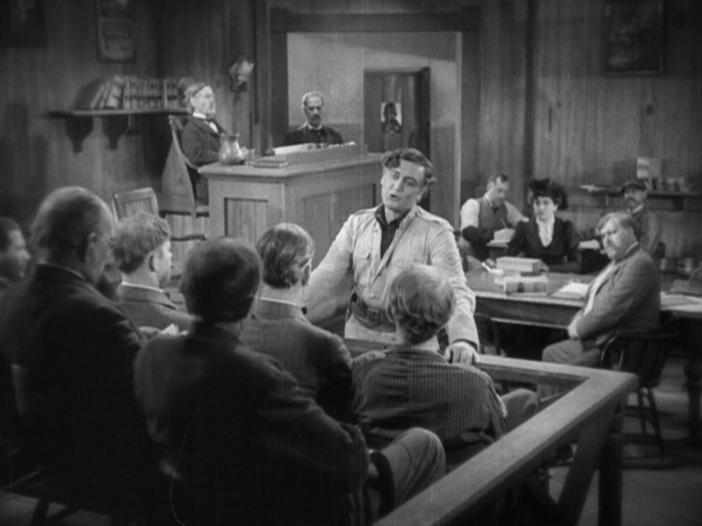 There were three scenes noteworthy of mention: The first being the opening shots of hundreds of people racing across the plains with their horses and wagons. That must have taken some serious co-ordination to film. I have to give credit where credit is due for those scenes. Another scene of importance is towards the end with Sabra being elected as a congresswoman; but the best scene is the courtroom drama with Yancey defending Dixie Lee (ESTELLE TAYLOR), a young woman who basically screwed him out of his potential claim to land. Earlier in the film Dixie pulls a stunt where she deliberately injures her horse so that Yancey (silly name - Yancey) will stop to assist her before she steals his horse and rides off on it to claim the land he had intended to grab. She even has the bloody cheek to get HIM to put her horse out of its misery too when it is mortally wounded! Despite this he offers to defend her in her trial.