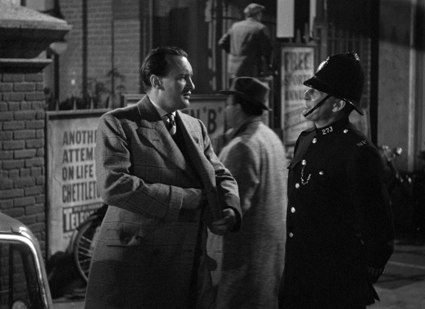 -Alfred Hitchcock would often appear in his own movies as a brief cameo. In this film he is seen near the end just as Favell (GEORGE SANDERS) is talking with a policeman about where he has parked his car. See here.