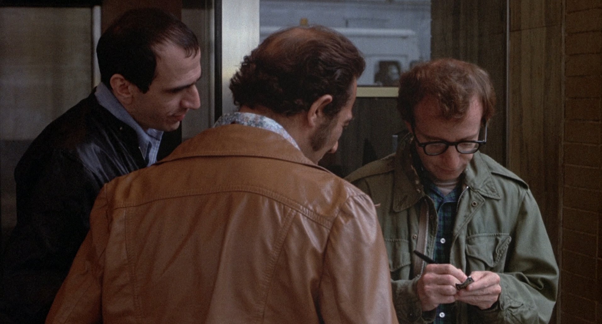 -After being accosted on the street by two random jerks, Woody Allen's character greets Diane Keaton by telling her he was standing with the cast from The Godfather. Spot the reference, anybody?