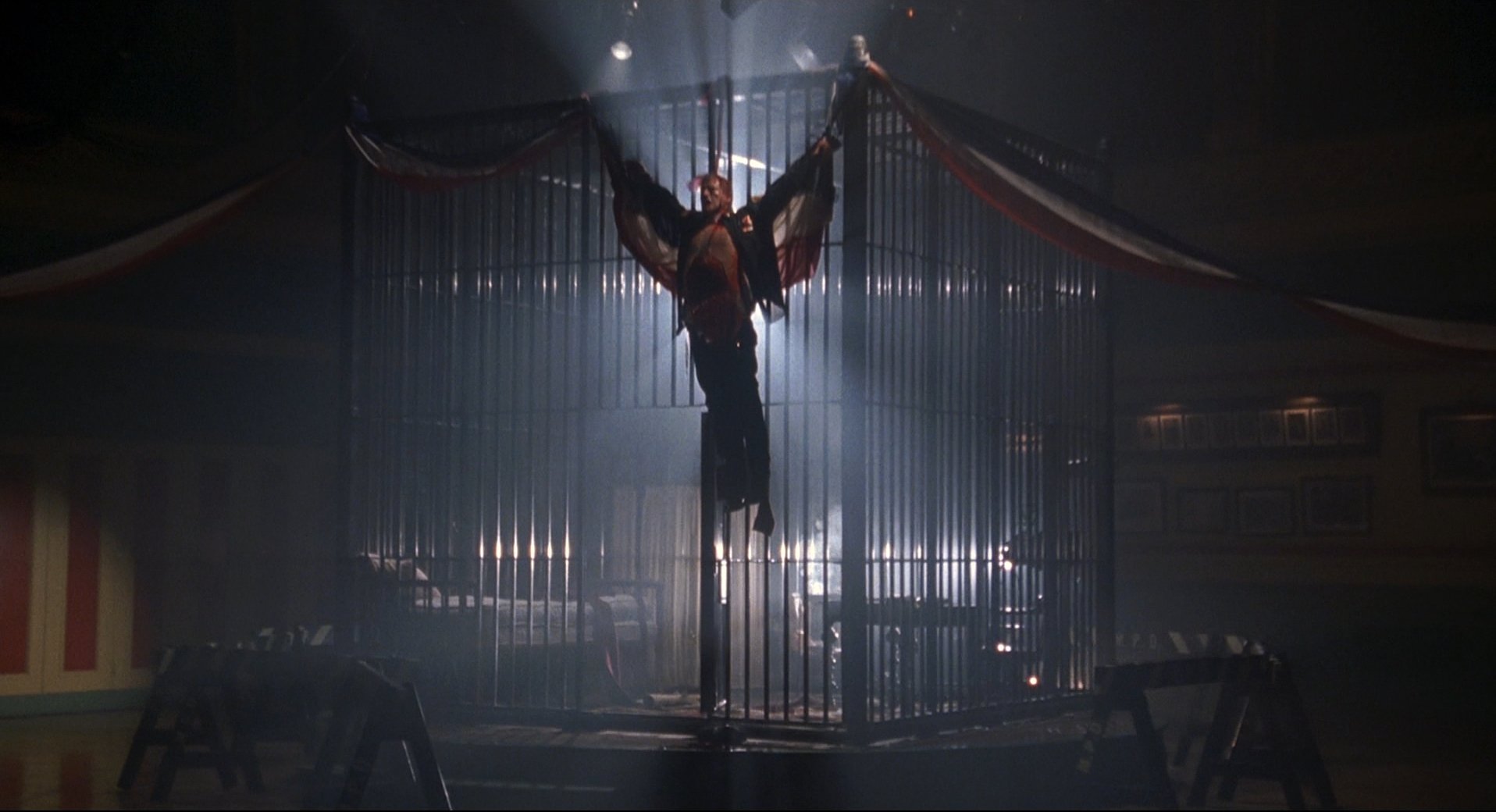 The cellblock set is great and the music really adds to the atmosphere too. There is the brilliant edit/reveal when the FBI agents think they have found Lecter on top of the elevator and we cut to him peeling off his face in the back of the ambulance. Truly a masterpiece in film-making. Brilliant directing with all the actors breaking the fourth wall in almost every scene (it gets a bit obvious after a while).