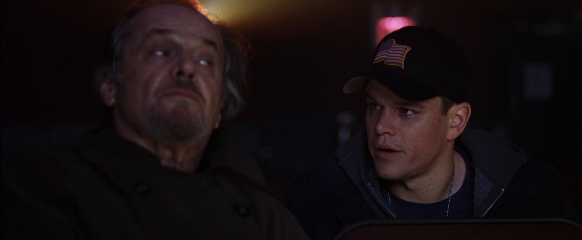 Frank Costello (JACK NICHOLSON) is an Irish Mob boss living in Boston. He is under surveillance by the police who send a young rookie cadet (LEONARDO DICAPRIO) to infiltrate Costello and his gang to get their confidence. Meanwhile, Costello has the protection of a corrupt cop (MATT DAMON) whom is feeding him information about a rat within his group.