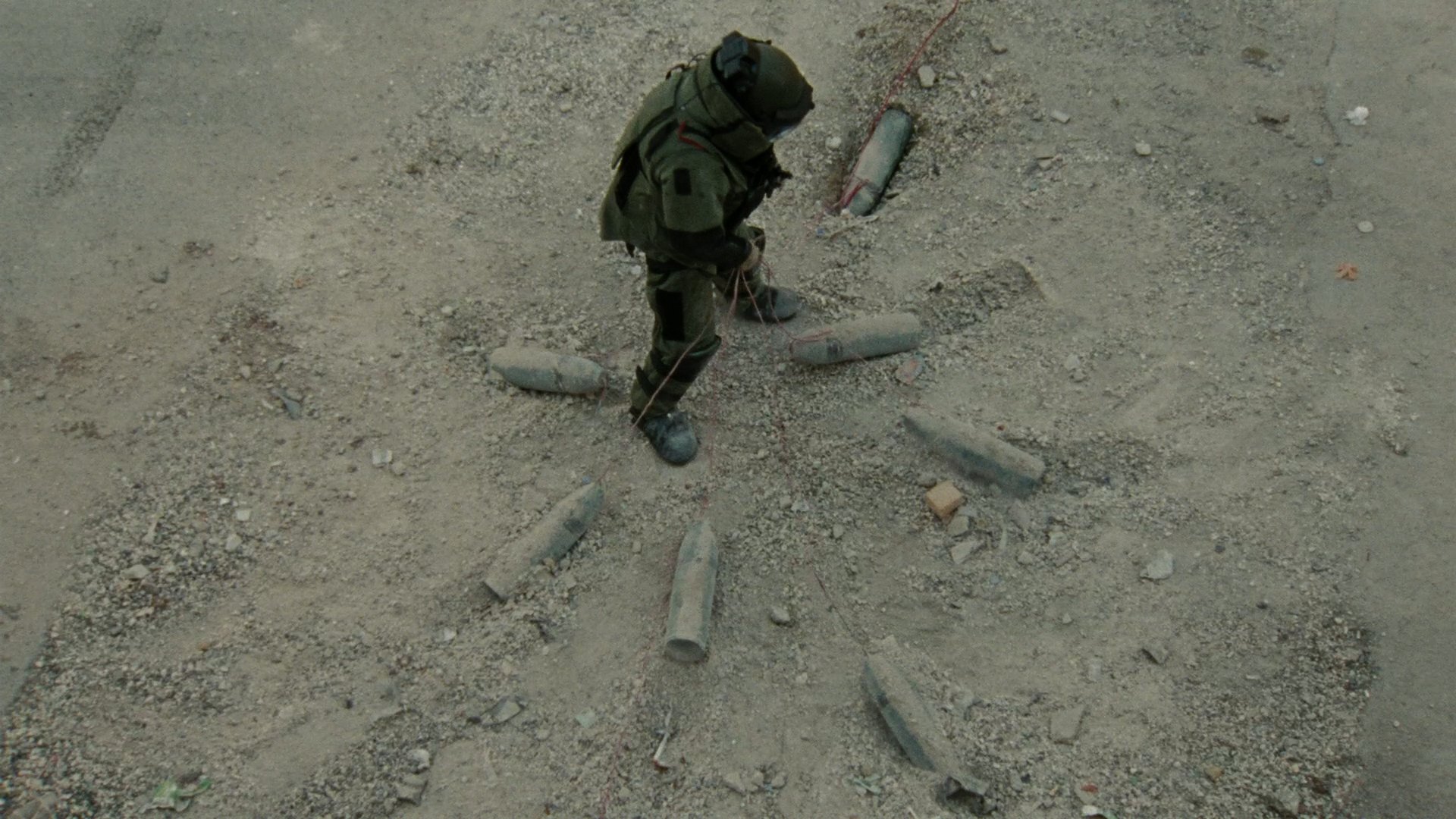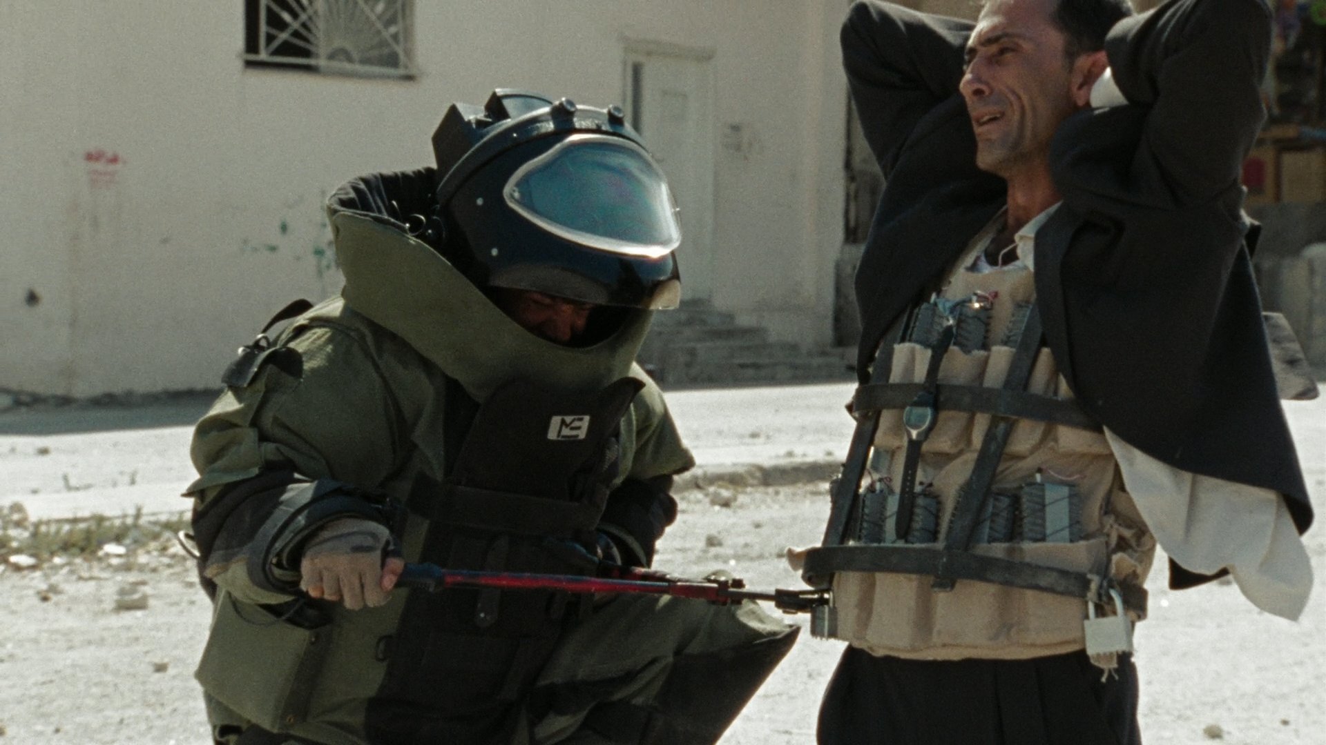 -Towards the end of the film when the Iraqi man pleads with the army to help disarm a large amount of explosives that have been strapped to his chest but when they see the severity of the situation they decide there is no way they can defuse the bombs in time.